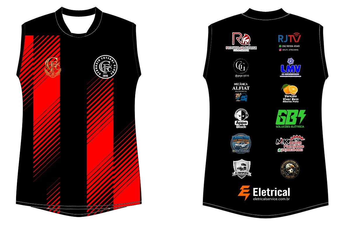Com design moderno em preto e vermelho, trazendo grafismos dinâmicos e o escudo oficial do Gervásio Futebol Clube, essa peça representa a rotina de treinos, a preparação diária e a mentalidade vencedora do clube.