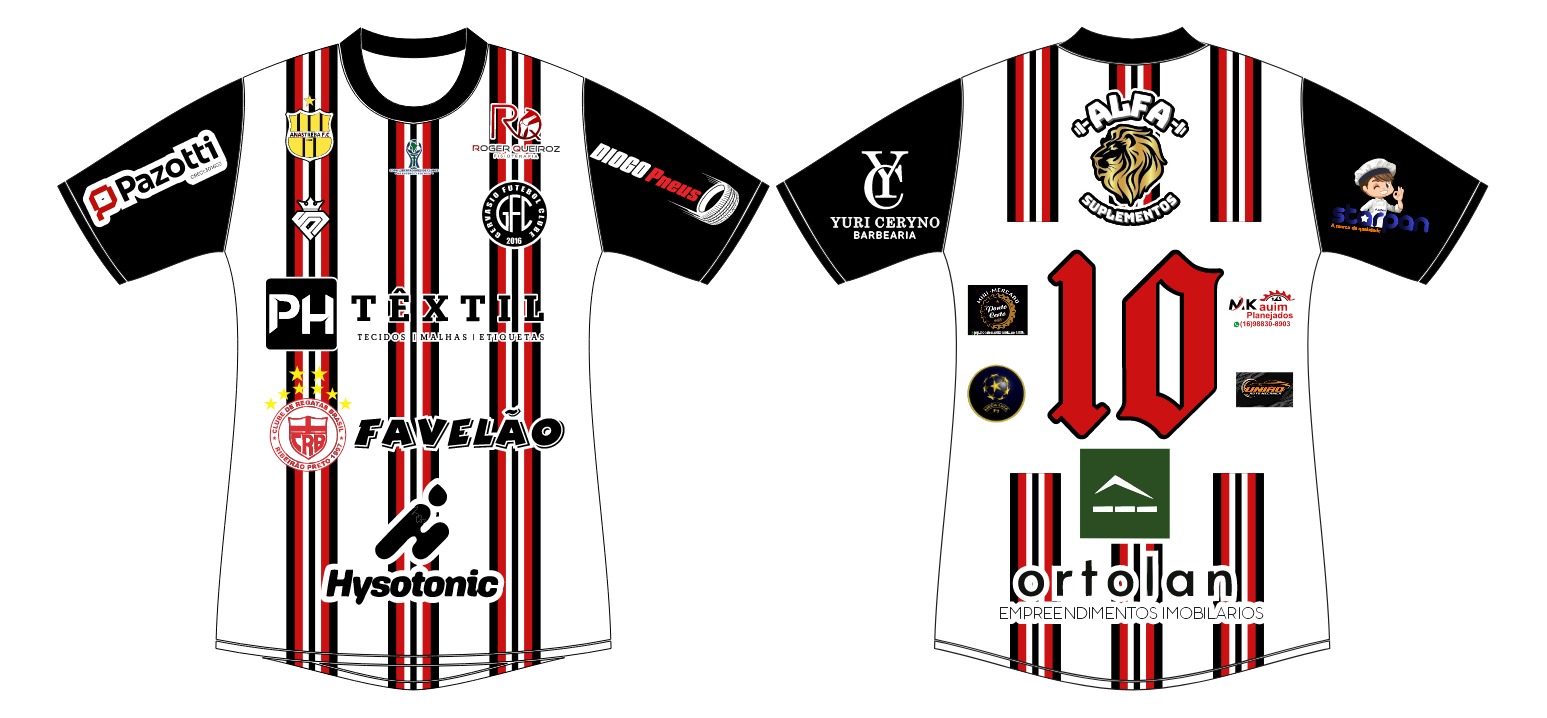 Com design clássico em preto, branco e vermelho, as listras verticais reforçam a tradição do Gervásio Futebol Clube, enquanto o escudo oficial GFC 2016 simboliza orgulho, pertencimento e respeito à trajetória do time.